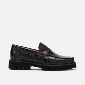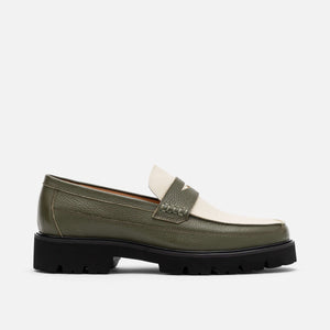 Men's Adler Olive/White Leather Lug Penny Loafers