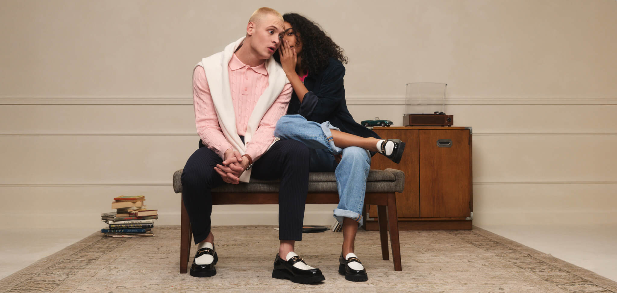 Ms. Calum Black/White Pebble Leather Lug Penny Loafers