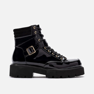 Women's Ms. Atlas Black Patent Leather Strap Boots