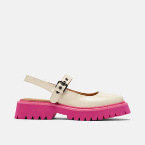 Women's Luna Cream/Pink Leather Mary Jane Lug Slingbacks