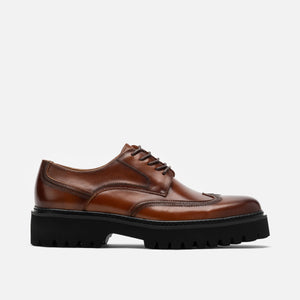 Ronan Mahogany Leather Lug Wingtip Shoes