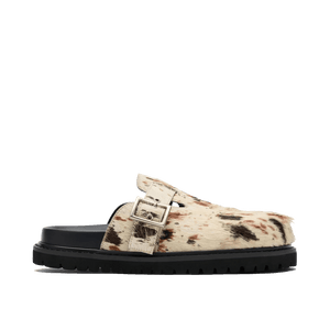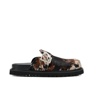 Be wild. Be free. Shiloh Loafer Mules designed with Dark Horse pony-hair upper with an adjustable gold buckle straps. Slip on and chill out. Note: Each shoe is individually hand-painted and will not match exactly to the photos / be exactly alike.